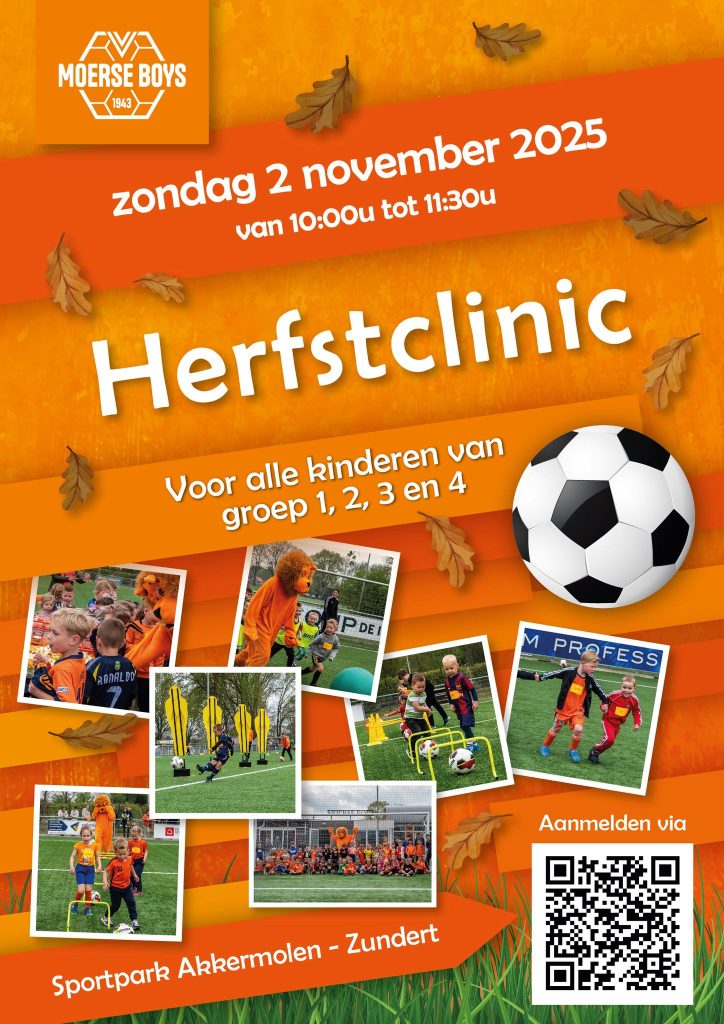 Op zondag 2 november organiseert Moerse Boys een leuke en sportieve voetbalclinic voor alle kinderen uit groep 1 t/m 4. Tijdens de clinic maken