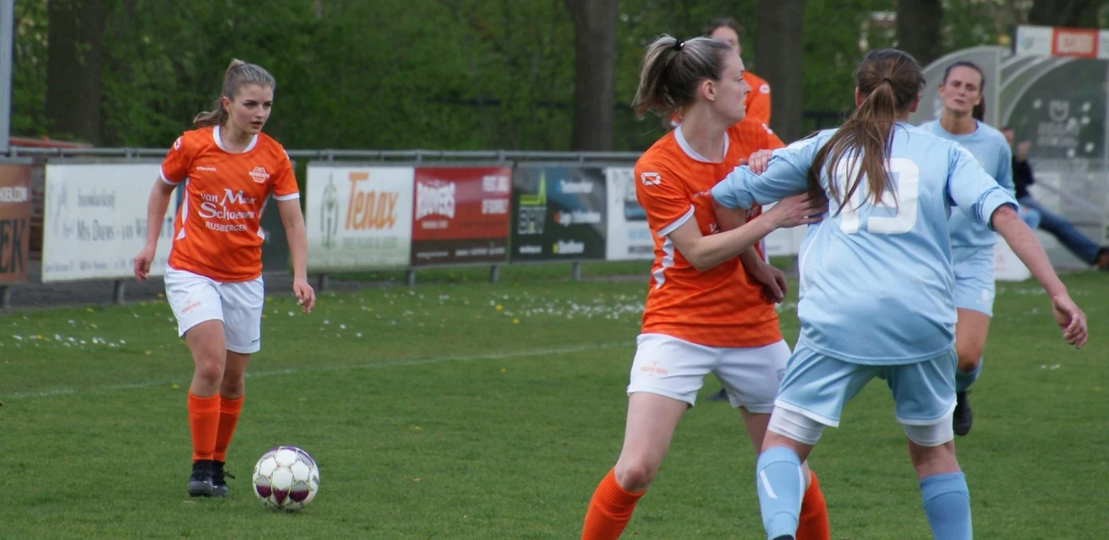 Moerse Boys Dames 1 steekt in goede vorm. De oranjes zijn inmiddels al vier weken op rij ongeslagen. Maar belangrijker nog: ondanks een mindere eerste helft vorige week in Landgraaf, lukt het de ploeg meer en meer om voetballend wedstrijden naar zich toe te trekken. Na drie gelijke spelen op rij, was het dan nu zaak om die positieve lijn te vervolgen tegen naaste belager Prinses Irene. Het rechtstreekse duel om de tiende plaats werd door De Moer terecht gewonnen. Op eigen veld sloeg het al vroeg in de wedstrijd toe, waarna de zege nooit in gevaar kwam.