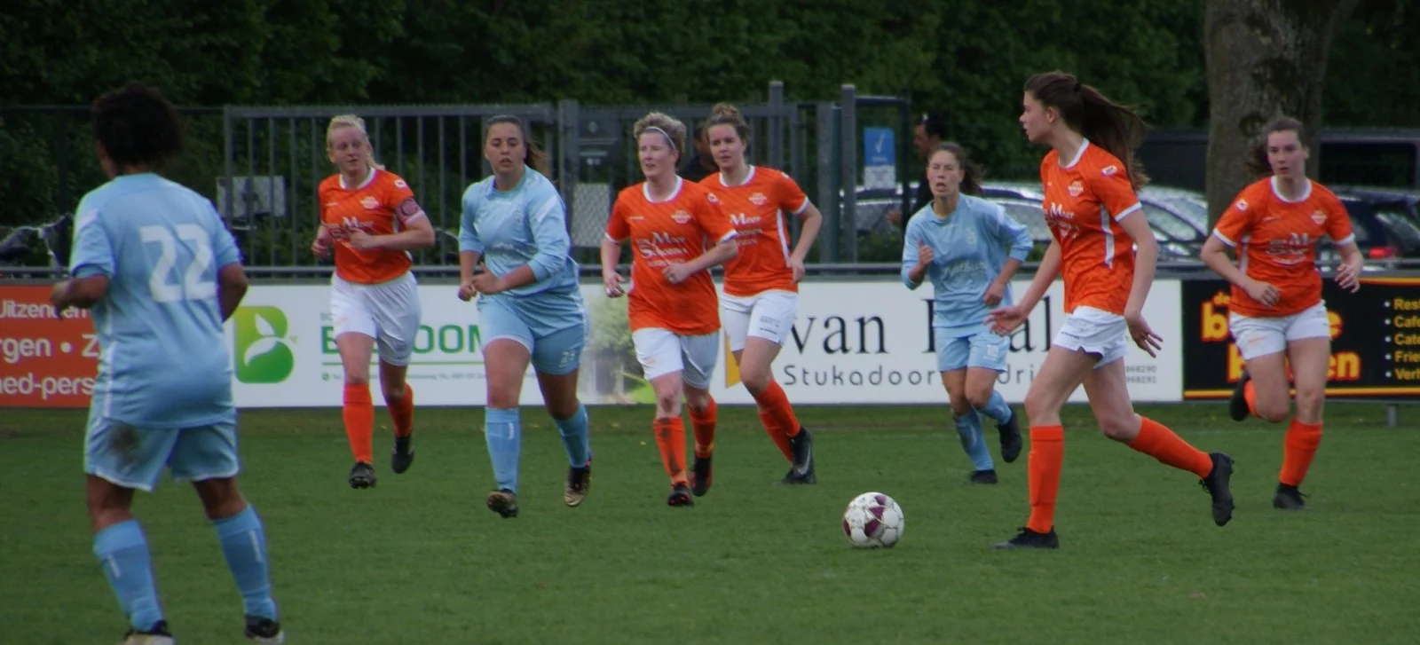 In de eerste minuten starten de bezoekers fel. Binnen vijf minuten is er ook de eerste mogelijkheid, als een aanval via rechts laag wordt teruggetrokken. Gelukkig is Chlóe goed mee naar binnen geknepen en blokt zij het schot. In de tegenaanval is De Moer ook meteen gevaarlijk. Via Robin, Minke B en Mira wordt Lotte weggestuurd. Minke B meldt zich met een sprint in de zestien, maar zij komt net een stap te kort om de voorzet van Lotte af te ronden.